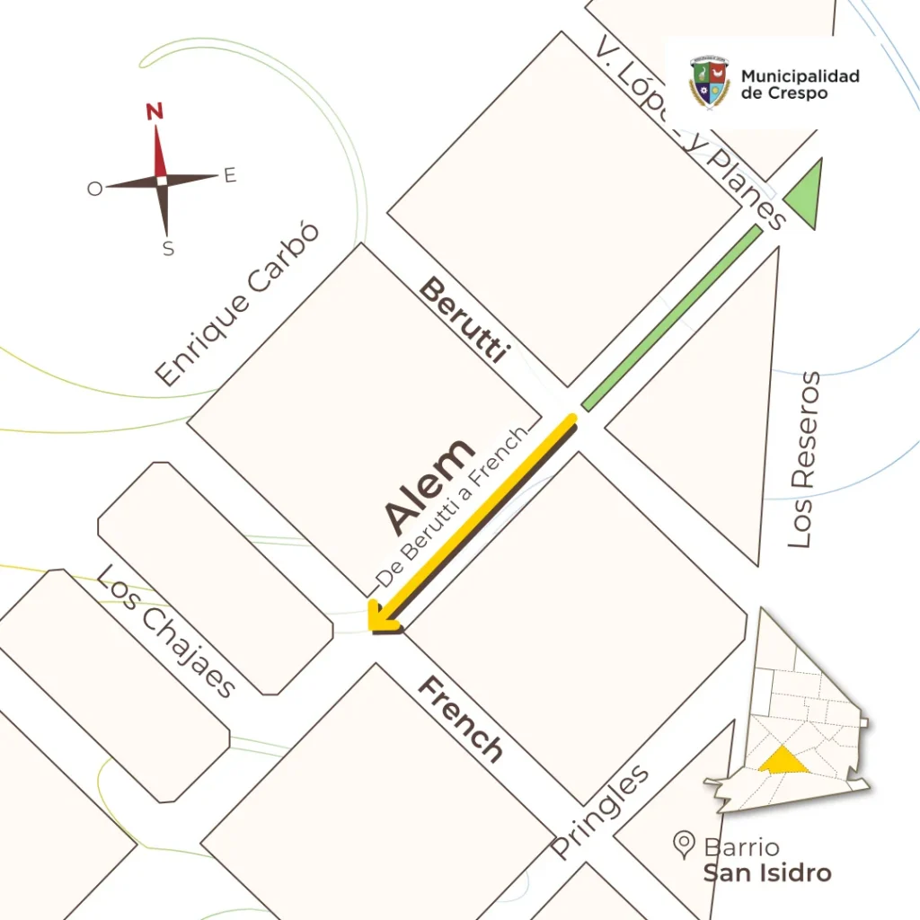 También se dispone la unificación del sentido de circulación en la calle Alem, que ahora será de norte–sur desde Berutti hasta French.