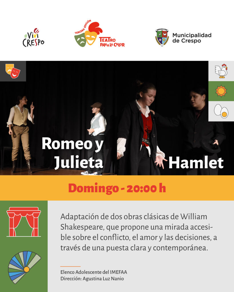 Sinopsis: Adaptación de dos obras clásicas de William Shakespeare, que propone una mirada accesible sobre el conflicto, el amor y las decisiones, a través de una puesta clara y contemporánea.