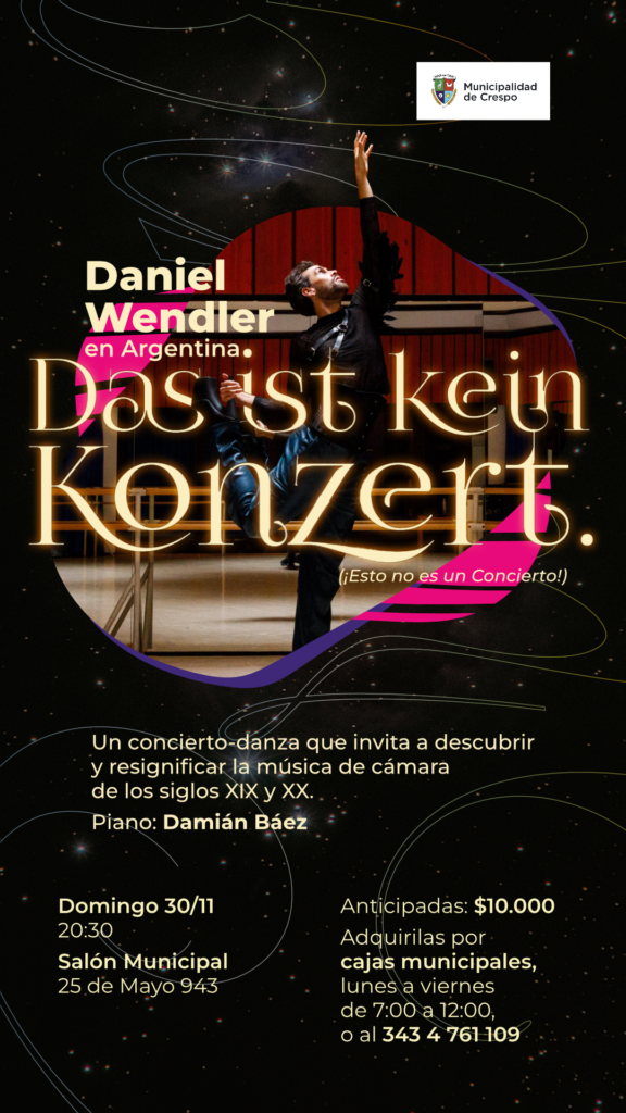 Daniel Wendler regresa a su ciudad natal para presentar ‘Das ist kein konzert’ (¡Esto no es un concierto!). El espectáculo es un concierto-danza que invita a descubrir y resignificar la música de cámara de los siglos XIX y XX. El artista contará con el acompañamiento del pianista bonaerense Damián Báez.