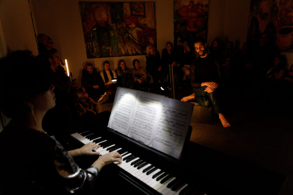 En la actuación evoca el amplio mundo del lied. Con una selección de compositores alemanes, franceses y argentinos de los siglos XIX y XX para piano y voz, los artistas navegan por un universo donde estas piezas confluyen. Melodías de Schubert, Schumann, Strauss, Faure, Debussy, Guastavino y Obradors son la excusa perfecta para esta peculiar performance.