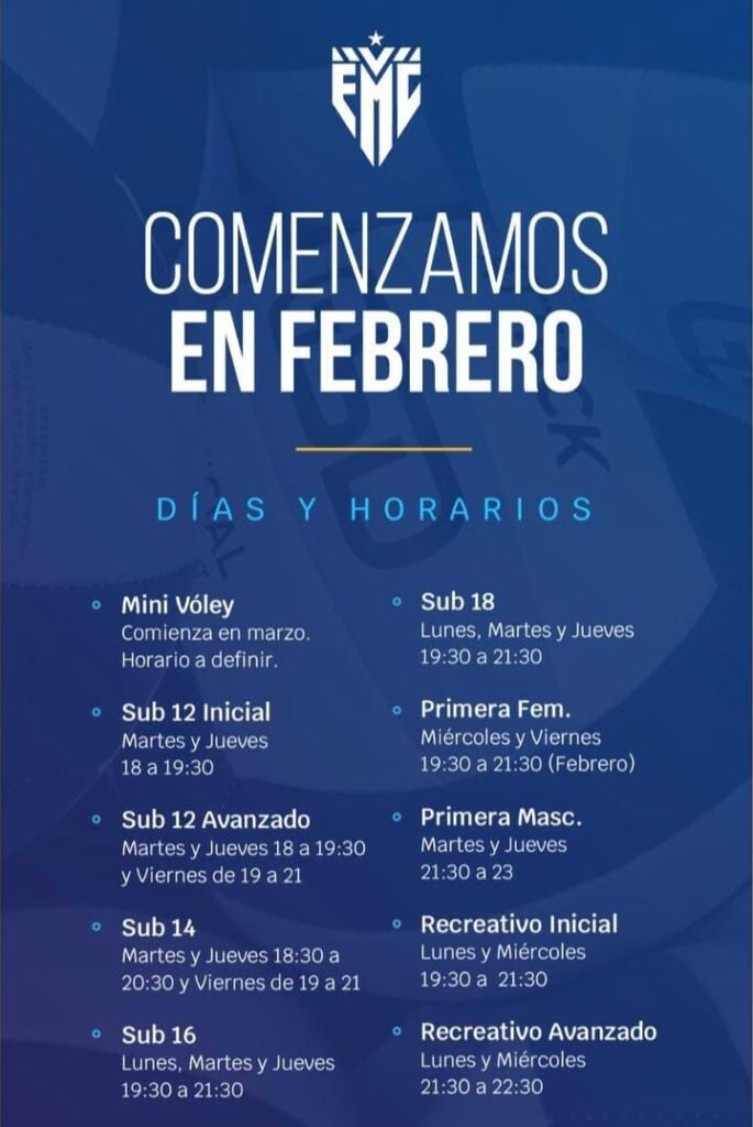 –Mini Vóley: Comenzará en marzo, días y horarios a definir.