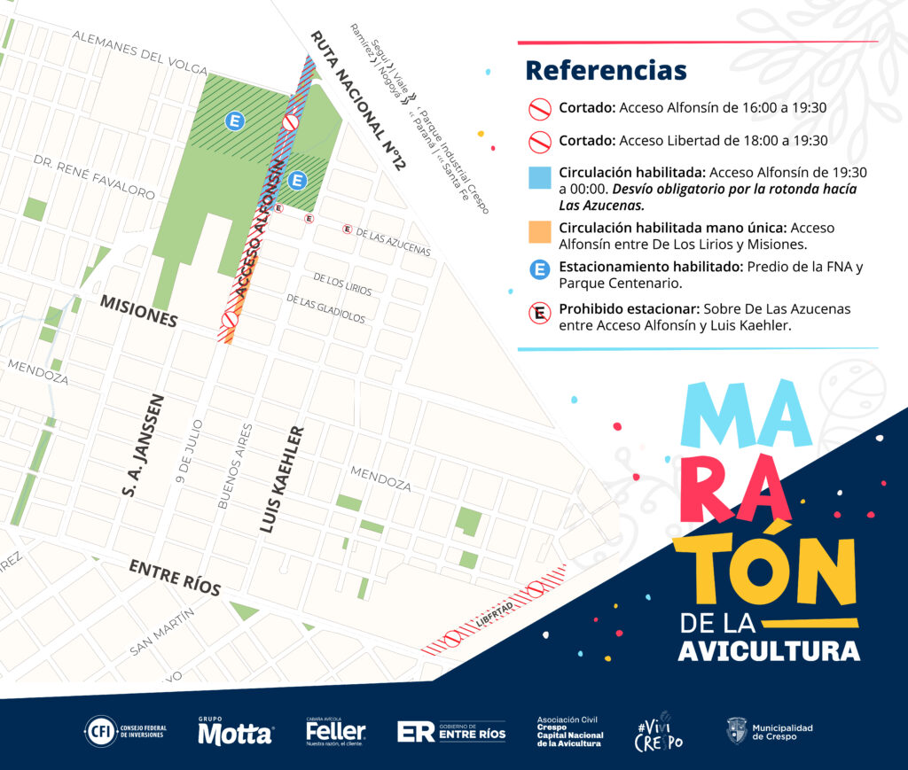 -El ingreso a la ciudad por Ruta Nacional 12 y Acceso Presidente Raúl Ricardo Alfonsín estará cortado entre las 16:00 y 19:30, aproximadamente.