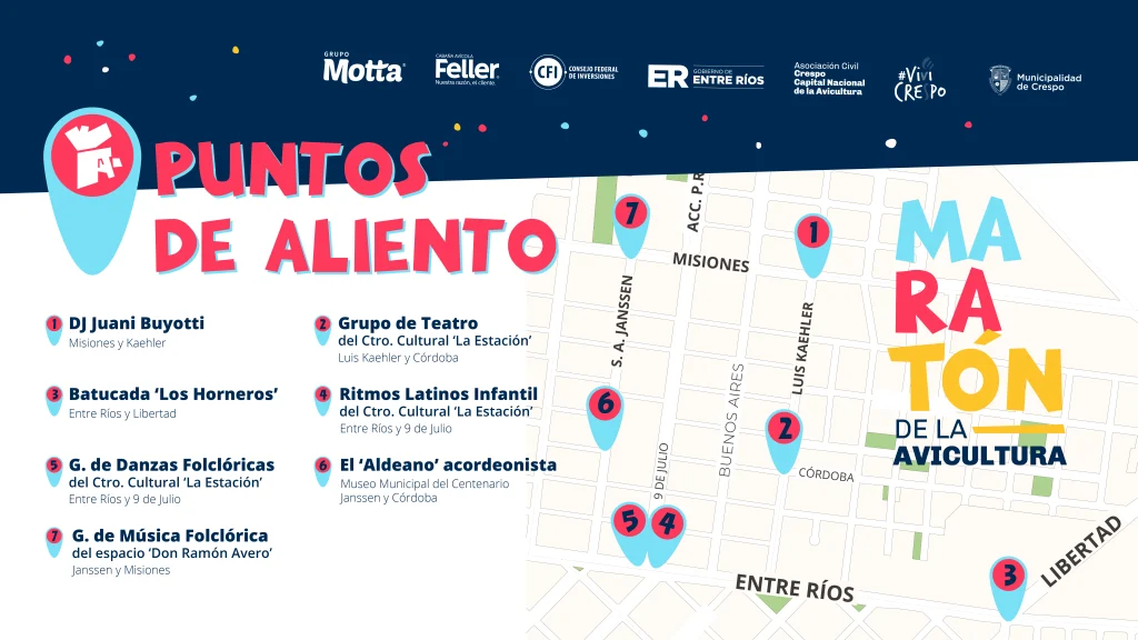 La ciudad de Crespo abre sus brazos para recibirte este sábado 1º de noviembre, con la Maratón de la Avicultura. Será una fiesta deportiva inolvidable, que además contará con una celebración posterior que tendrá espectáculos musicales y una variada propuesta gastronómica. Te esperamos desde las 18:00 en el Acceso Presidente Raúl Ricardo Alfonsín y De las Azucenas.