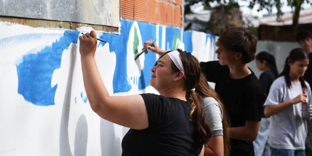 Considerando que estos lugares son de vital importancia comunitaria, para el “intercambio y los vínculos sociales”, se pintaron las paredes y se trabajó en conjunto con los estudiantes de la Escuela Nº 74 ‘Profesor Walter Heinze’ y del Centro Cultural ‘La Estación’, quienes aportaron su talento y predisposición para desarrollar un mural bajo la temática de plasmar una imagen panorámica que identifique al barrio.