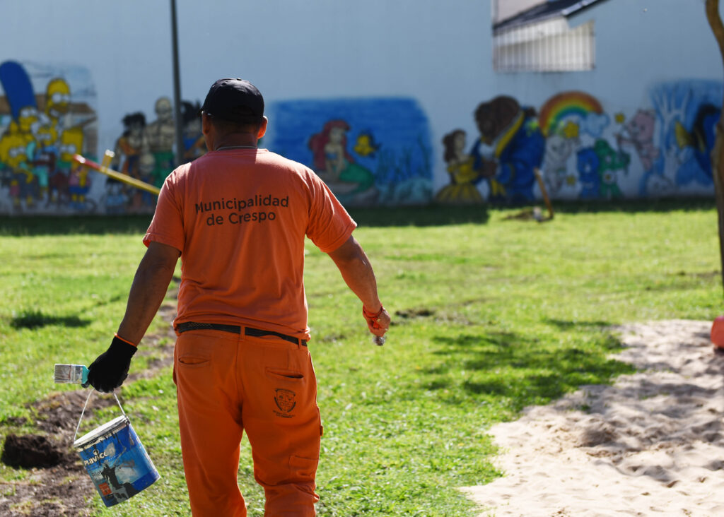 En el Parque Infantil ‘El Gurisito (Sarmiento y Avda. Ramírez) se efectuaron tareas para tener un mejor drenaje del agua en los días de lluvia, se hicieron acciones de mantenimiento y reacondicionamiento del equipamiento existente para la recreación, se trabajó en la reparación de luminarias con tecnología LED, en la forestación para contar con más sombra en épocas estivales y se incorporaron bancos. También se dialogó con Celso Gottig, autor de los murales existentes, para realizar las restauraciones correspondientes en ese sector que cuenta con imágenes de personajes de series y películas infantiles.