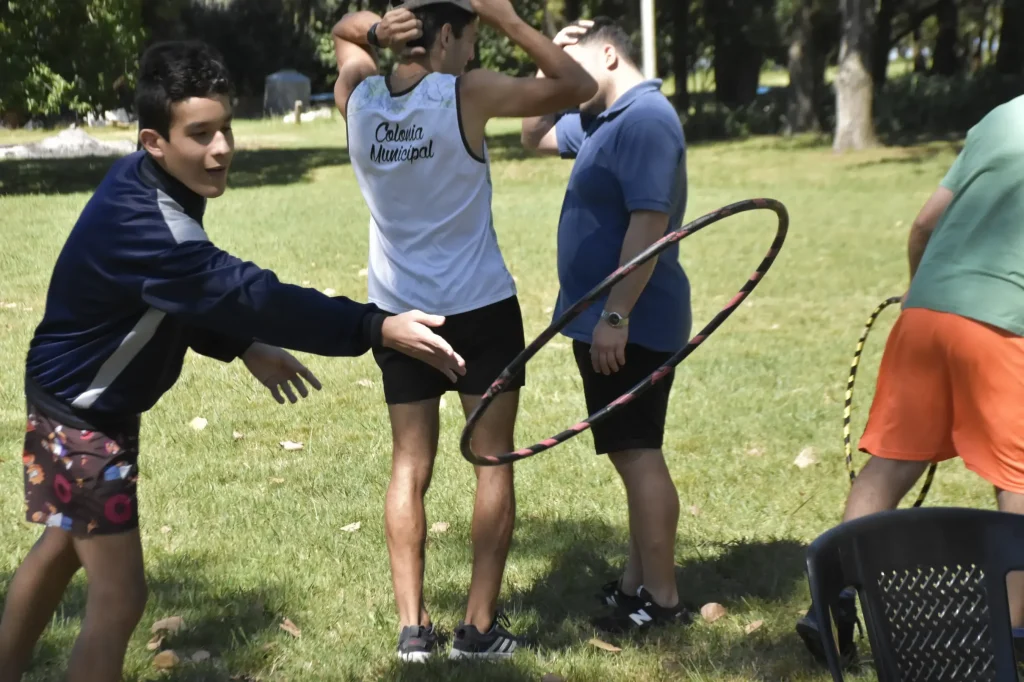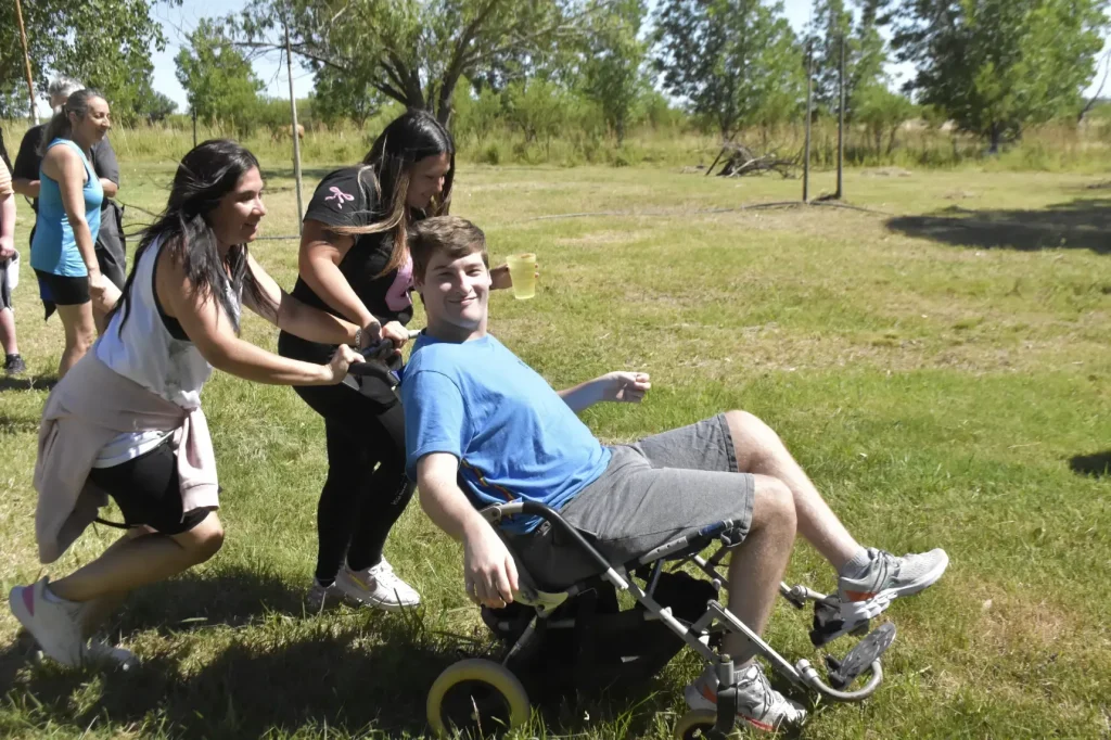 “¡Vamos, vos podés!” es el grito de uno de los jóvenes que anima a su compañero y que rompe el silencio en el Parque Evangélico ‘Los Paraísos’. Allí, 45 personas participan este año de la colonia para personas con discapacidad organizada por la Municipalidad de Crespo.