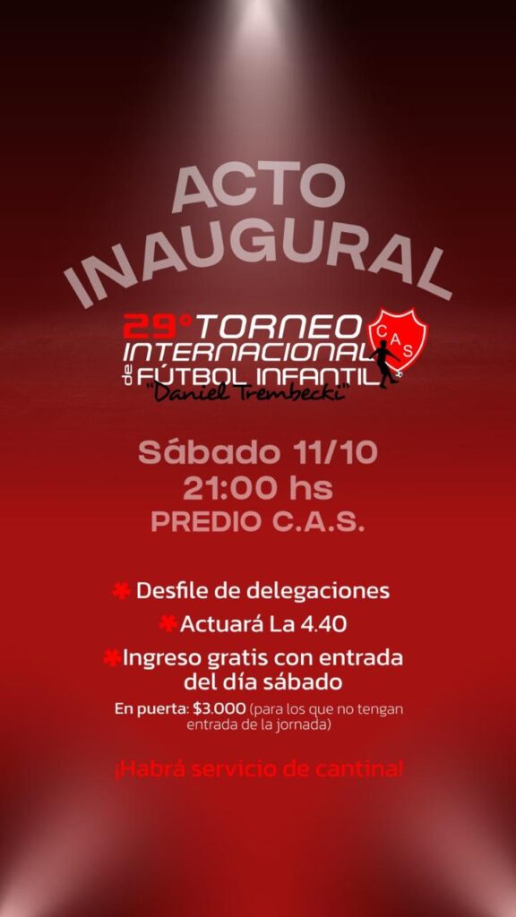 -Fútbol Infantil: El ’29º Torneo Internacional – Daniel Trembecki’, organizado por el Club Atlético Sarmiento, reunirá a futbolistas nacidos en los años 2012 a 2019/2020. También contará con una edición especial para categoría 2011. La programación se jugará en tres lugares: Estadio ‘Don César Bione’, Predio Auxiliar ‘Mario Trembecki’ y La Red (complejo de canchas ubicadas en el Club Tiro Federal Argentino). El viernes 10 y sábado 11 arrancará a las 10:00, mientras que el domingo 12 comenzará a las 9:00.