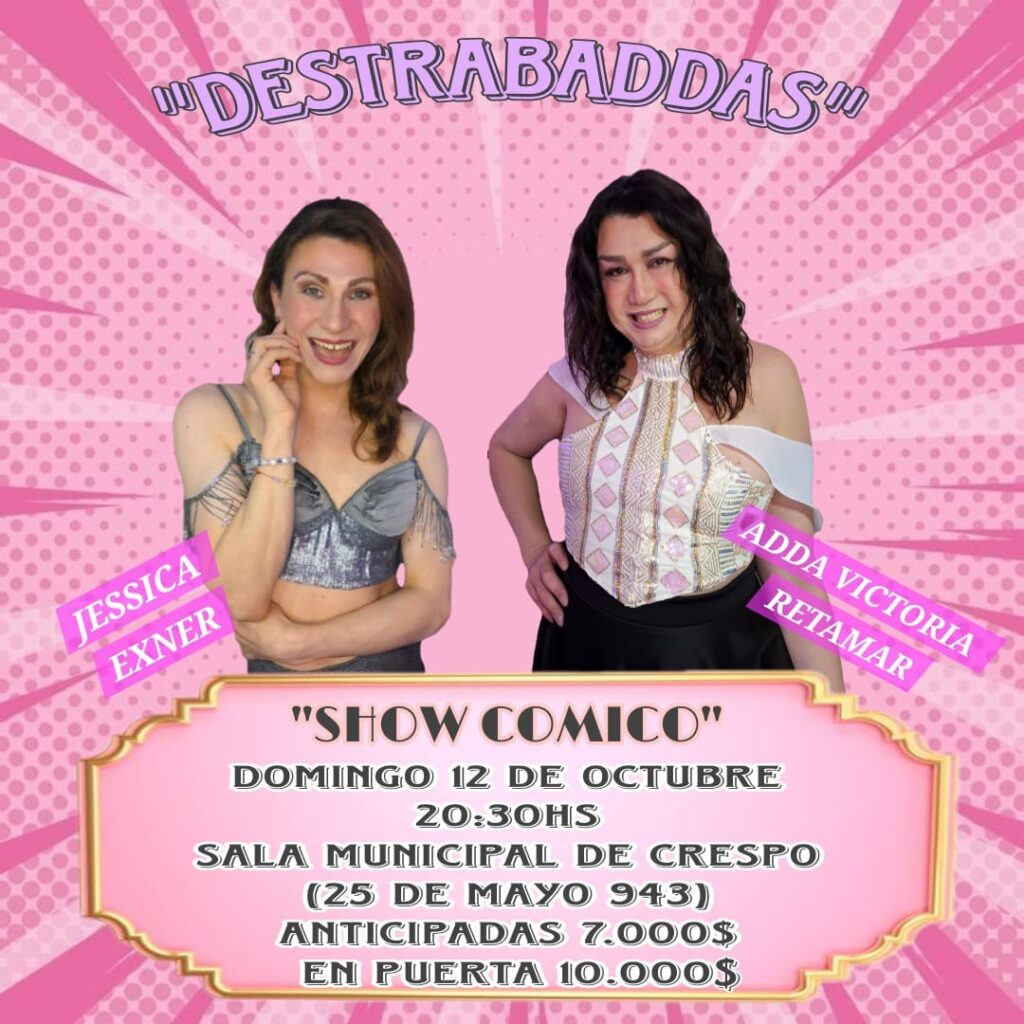 El domingo 12 de octubre se presentará la obra teatral ‘¡Destrabaddas!’, desde las 20:30, en el Salón Municipal.