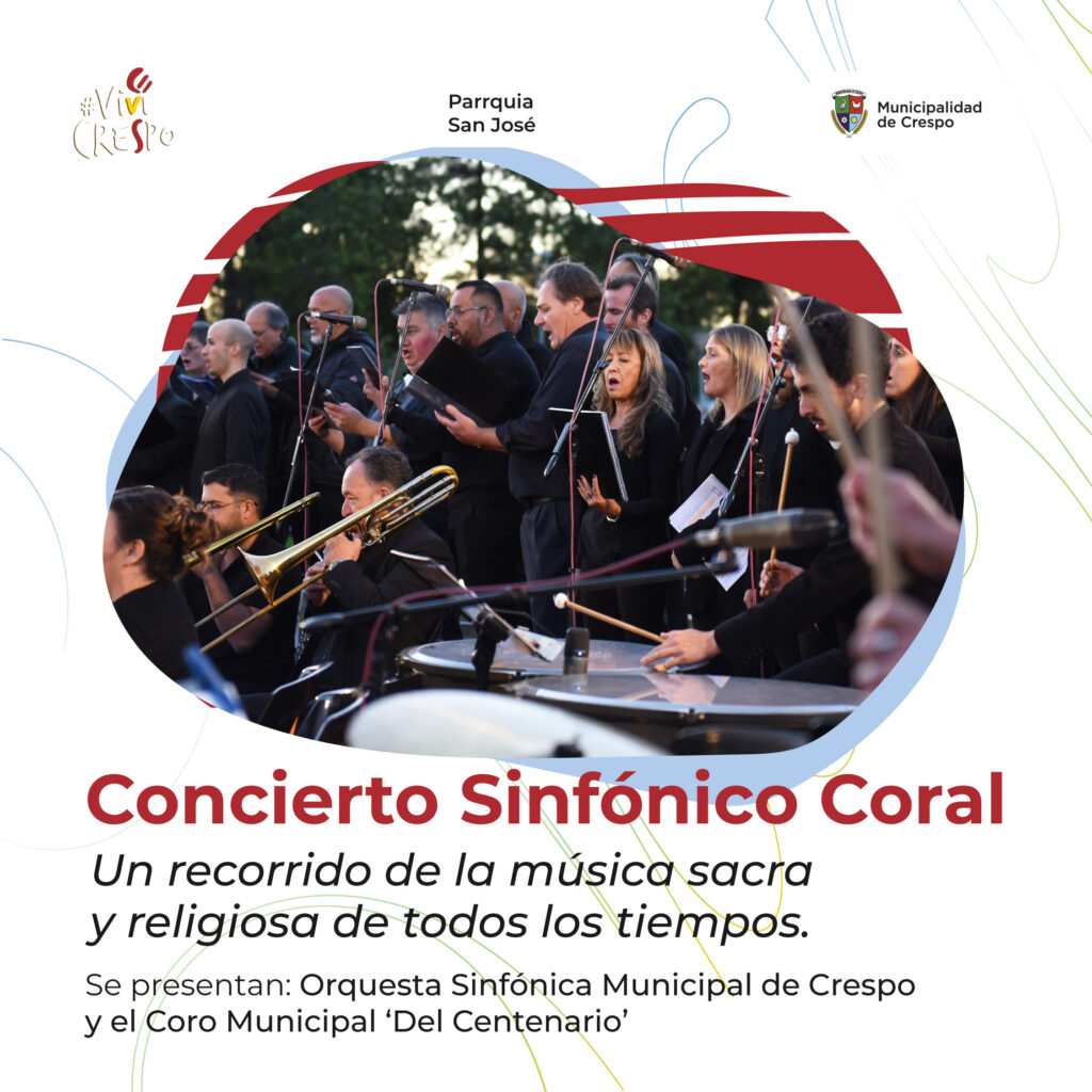 La Orquesta Sinfónica Municipal de Crespo y el Coro Municipal ‘Del Centenario’ de Crespo se presentarán en la Parroquia San José. En la oportunidad realizarán un recorrido de la música sacra y religiosa de todos los tiempos.