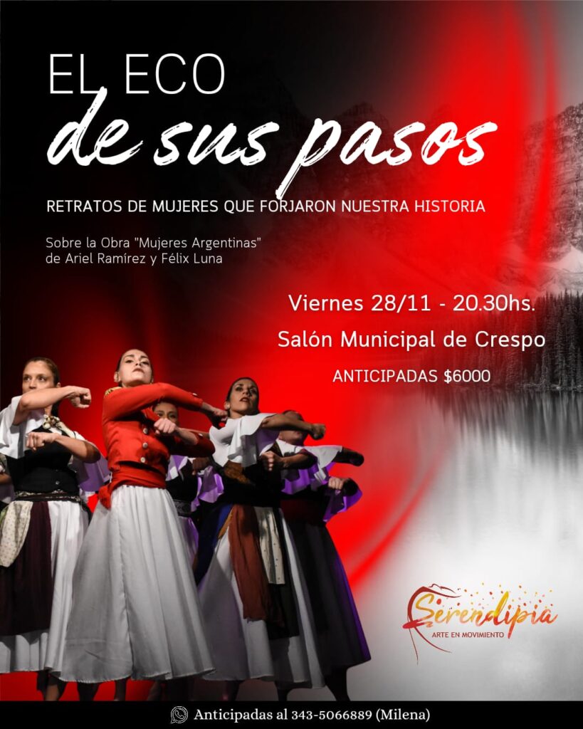 Será este viernes, desde las 20:30, en el Salón Municipal. El valor de las anticipadas es de $6000, y pueden adquirirse al siguiente número de teléfono 343-5066889. Organiza: Serendipia Academia de Danzas.
