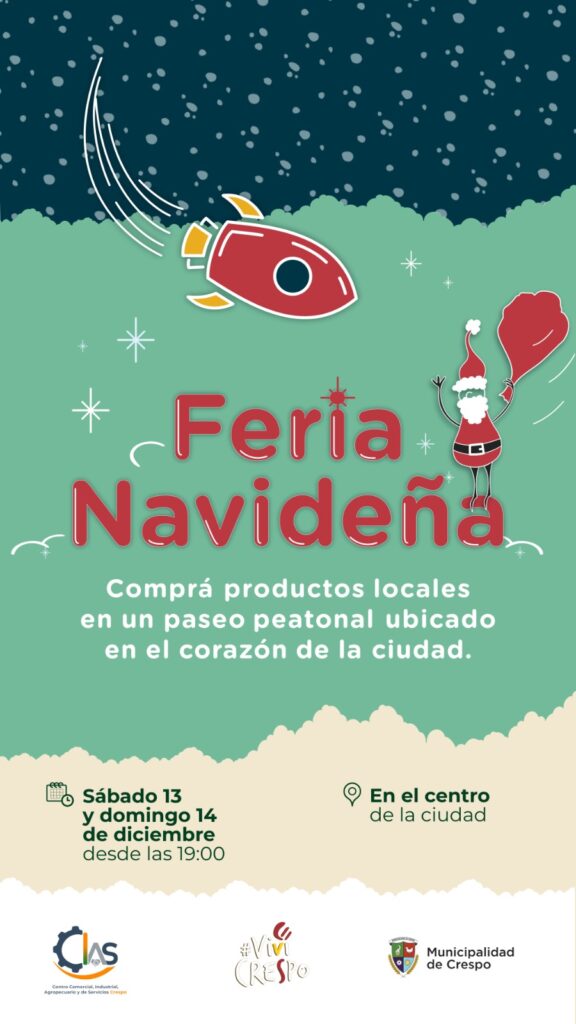 La propuesta también contará con espacios gastronómicos, juegos infantiles y espectáculos artísticos. Organizan: Centro Comercial, Industrial, Agropecuario y de Servicios Crespo – Municipalidad de Crespo.